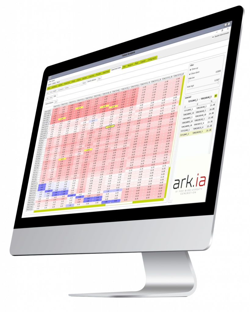 A partir de los datos de genotipado, ARK.IA genera perfiles moleculares específicos que se asocian con los fenotipos más resistentes y deseables. Gracias a sus simulaciones genéticas, la plataforma permite diseñar los cruzamientos óptimos dentro de una población, maximizando la eficiencia y la diversidad genética.